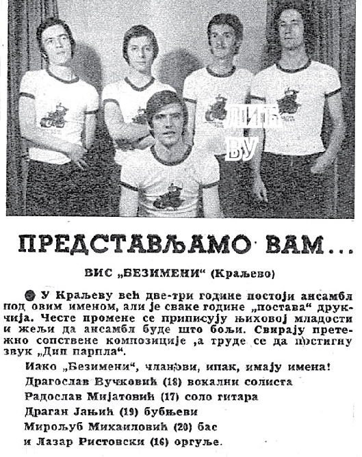 Вокално инструментални састав “Безимени” су били рок група из Краљева која је деловала у периоду од 1970. до 1975. године. Постигли су сасвим солидан успех, наступали на омладинским радним акцијама широм Србије, а појавили се и на компилацијском албуму у издању ПГП РТБ-а, „Вече уз радио“. У овој групи је своју каријеру започео чувени клавијатуриста Лазар Ристовски.