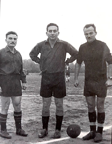 Мирко Шпановић – Шпанац је први сваезни фудбалски судија из Краљева. На фотографији са помоћницима Драгославом Мацићем и Душаном Матовићем пред почетак једне утакмице 1957. године.